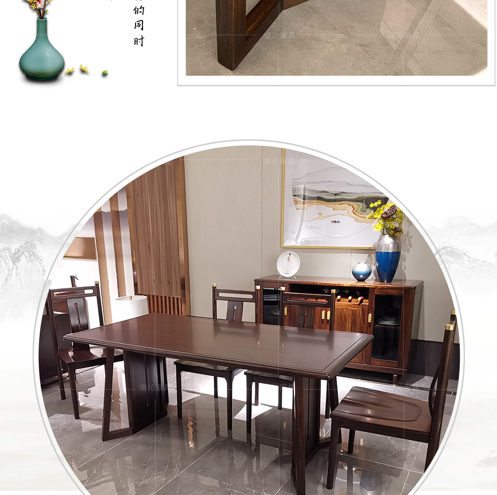 ウキンウッドダッグテーブル全実木テーブルテーブル新中华简约軽奢禅意ダイニングイ台湾组レストランリビングセット家具メーカー直営徳沁景致アフリカ烏金木【180*90*75 cmダイニングテールブル】
