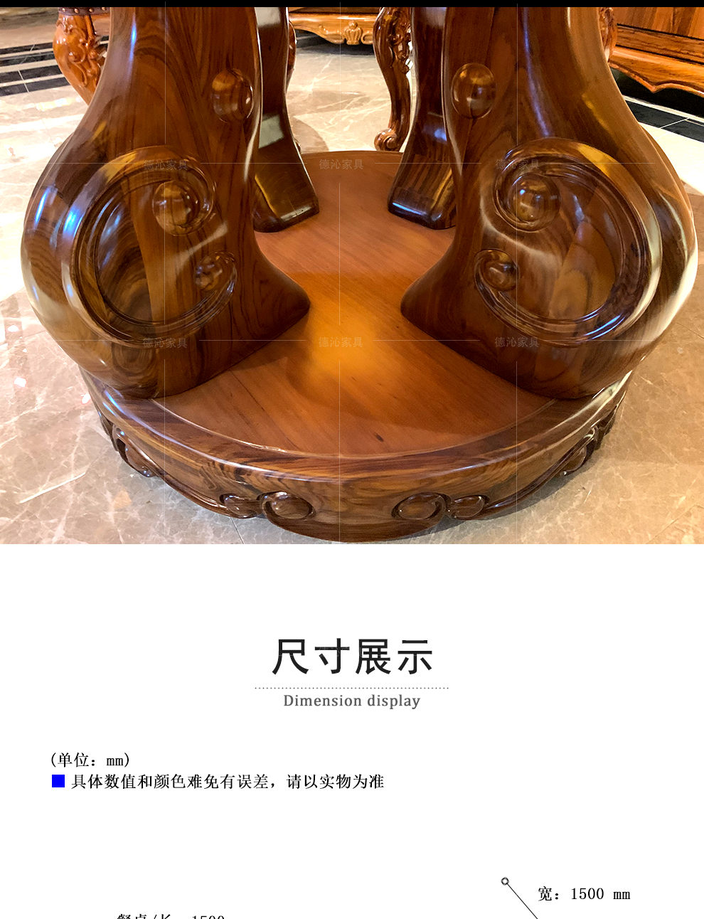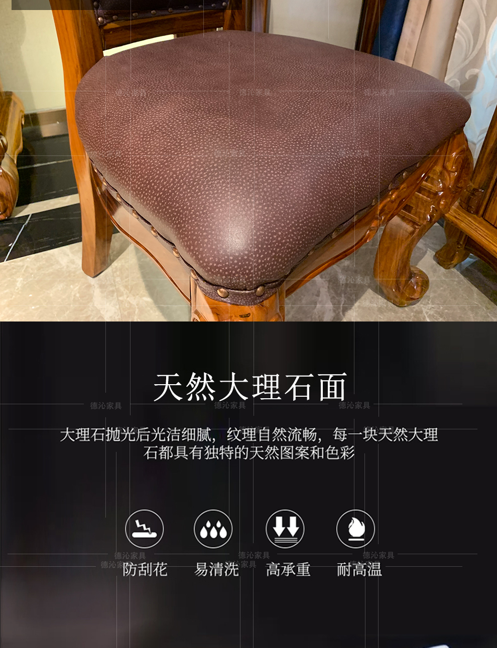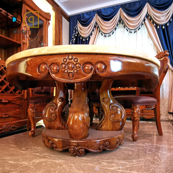 ウキンウッドダッグテーブル天然大理石テーブルダイニリングテーブル西洋式近代中国式簡単美彫刻レストラン別荘家具メーカー直営徳沁盛致烏金木+天然大理石【150*150*85 cmダイニングテーブル】