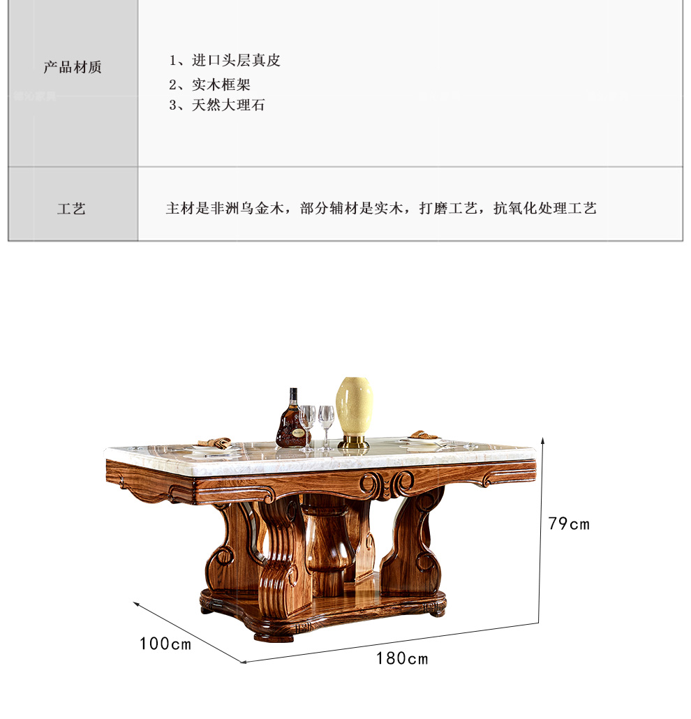 ウキンウッドダッグテーブル天然大理石テーブルテーブル家庭用テーブル欧米式豪華な大部屋型レストラン家具セットのメーカー直営の徳沁朗から烏金木+天然大理石【180*100*82 cmデニングテーブル】