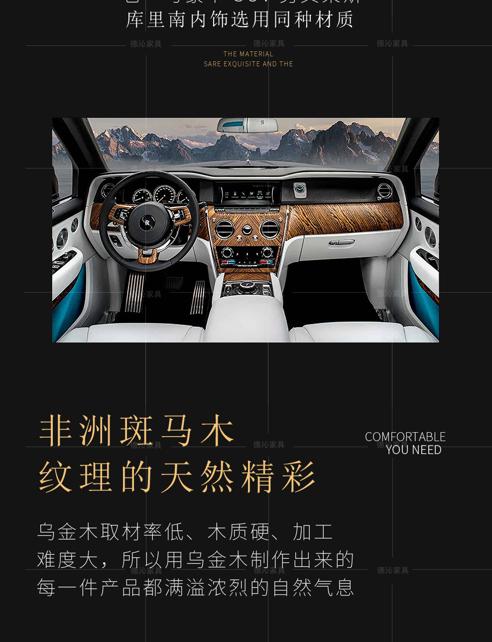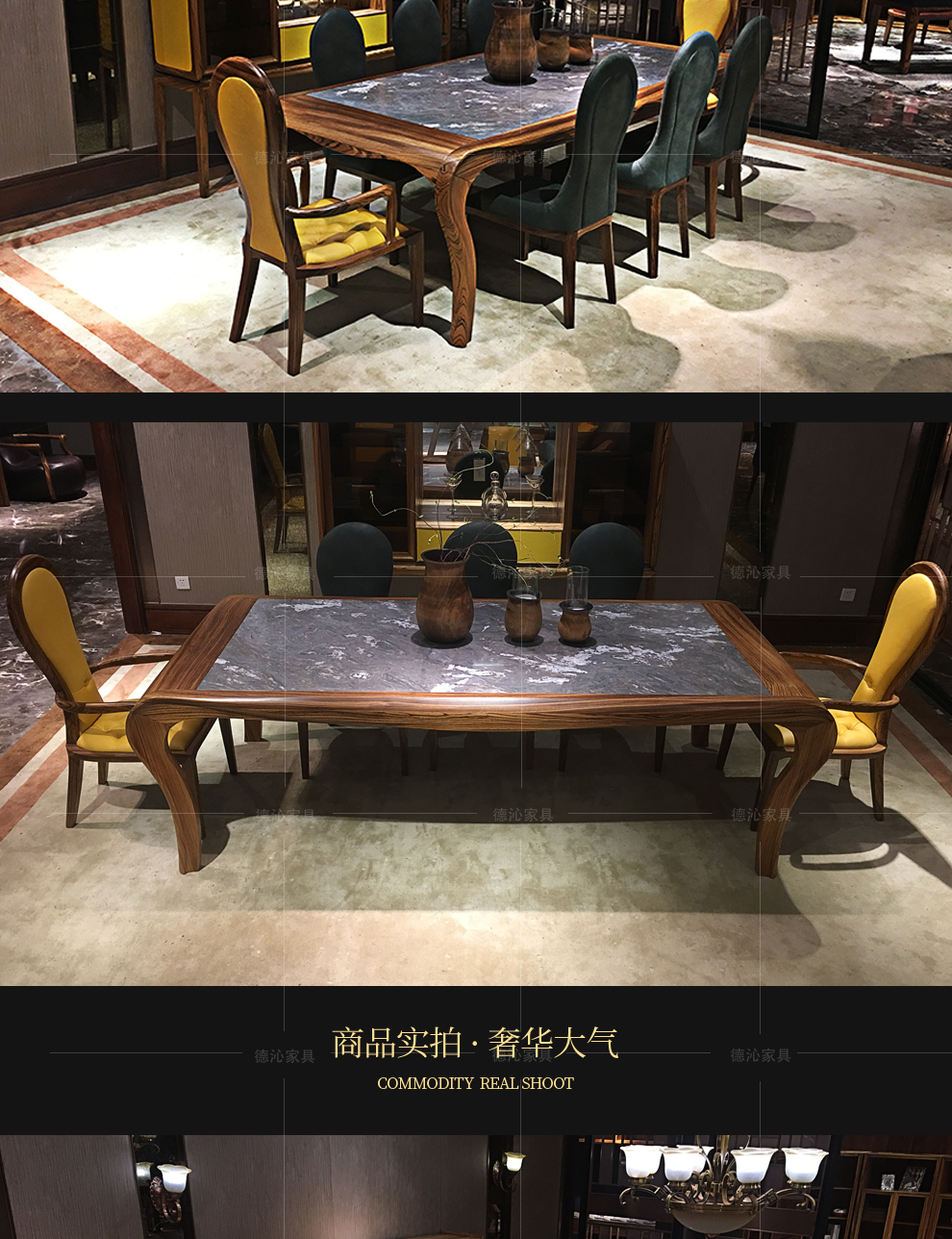 ウキンウッドダッグテーブル天然大理石全実木長テーブル1.8 m食事台椅子简约新中国式ルーブル大戸型別荘会所レストラン家具徳沁坤がアフリカのゼブラ木+藍金沙【260*116*78 cmダニリスト】