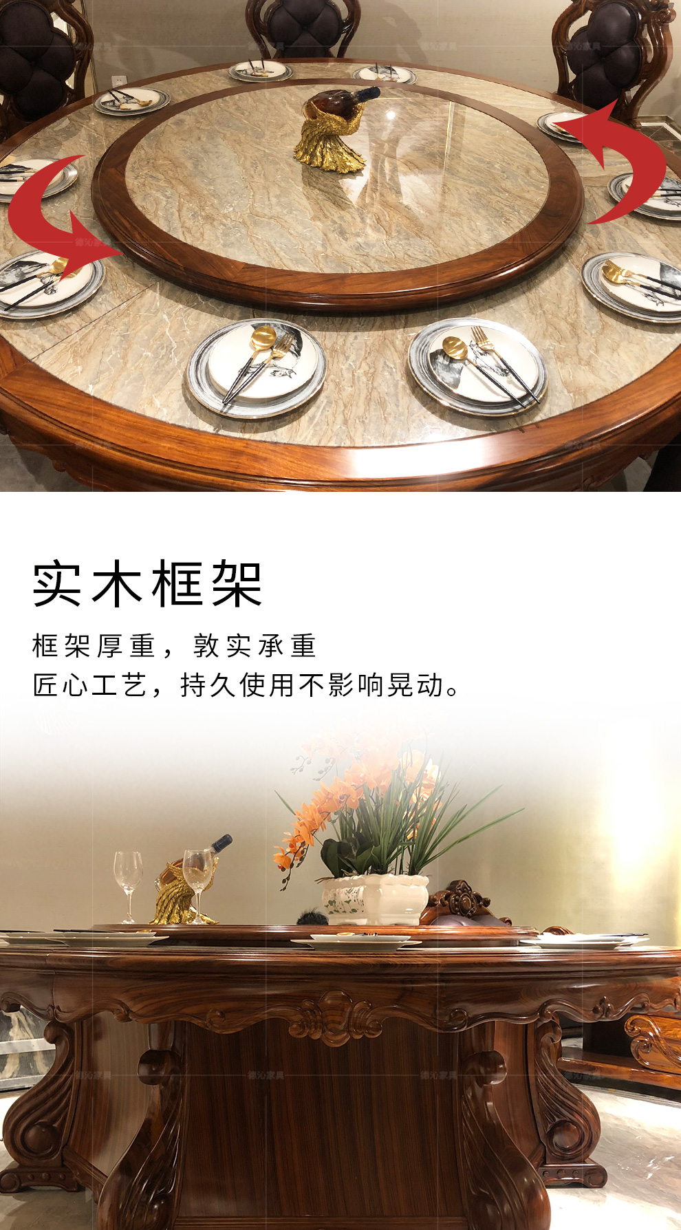 ウキンウッドダッグテーブル天然大理石テーブル电动丸テーブル本革丼セット欧式アメリカ式简欧新中国式古典雕花别荘家具徳沁迪致天然大理石【300*300*80 cmデニングテーブル回転盘180アフリカ烏金木