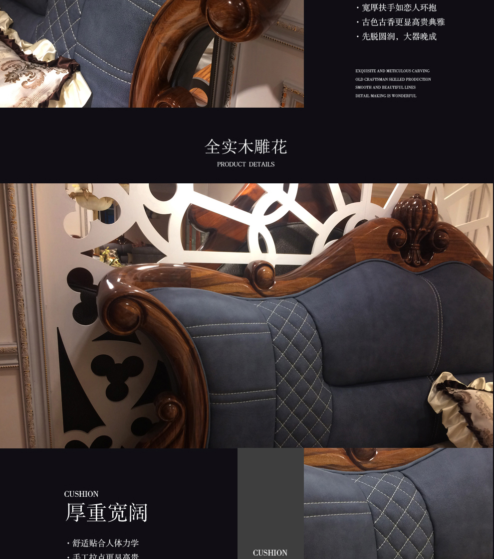 | 商品名称 | ウキングベッド真皮全木ベッド新古典アメリカ式彫刻花1.8メートルダブルベッド結婚ベッド別荘大統領スイートルーム家具メーカー直営徳沁栄はアフリカのウキンギ+接触面の頭層真皮【1.8メートルヌードベッド】 |