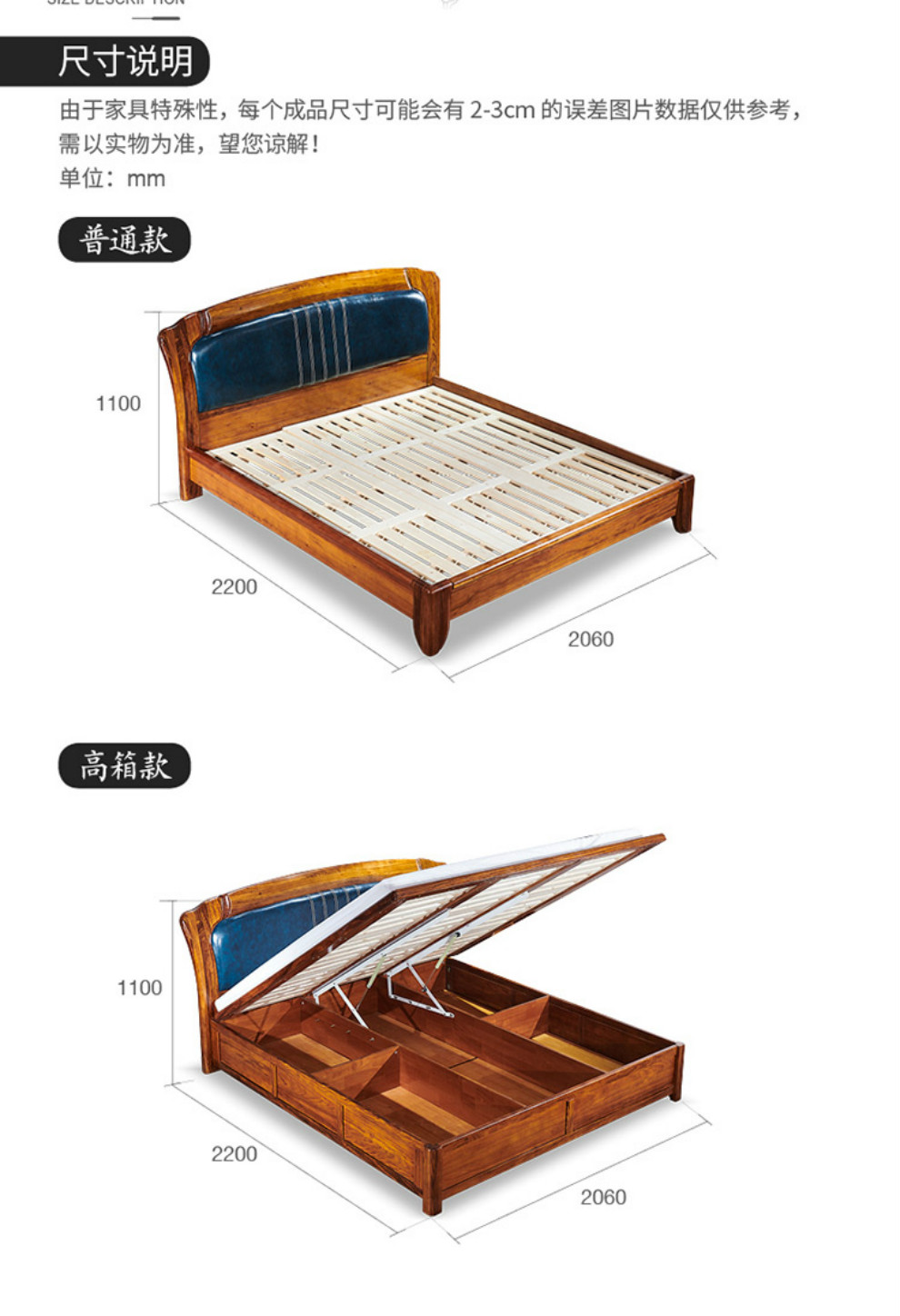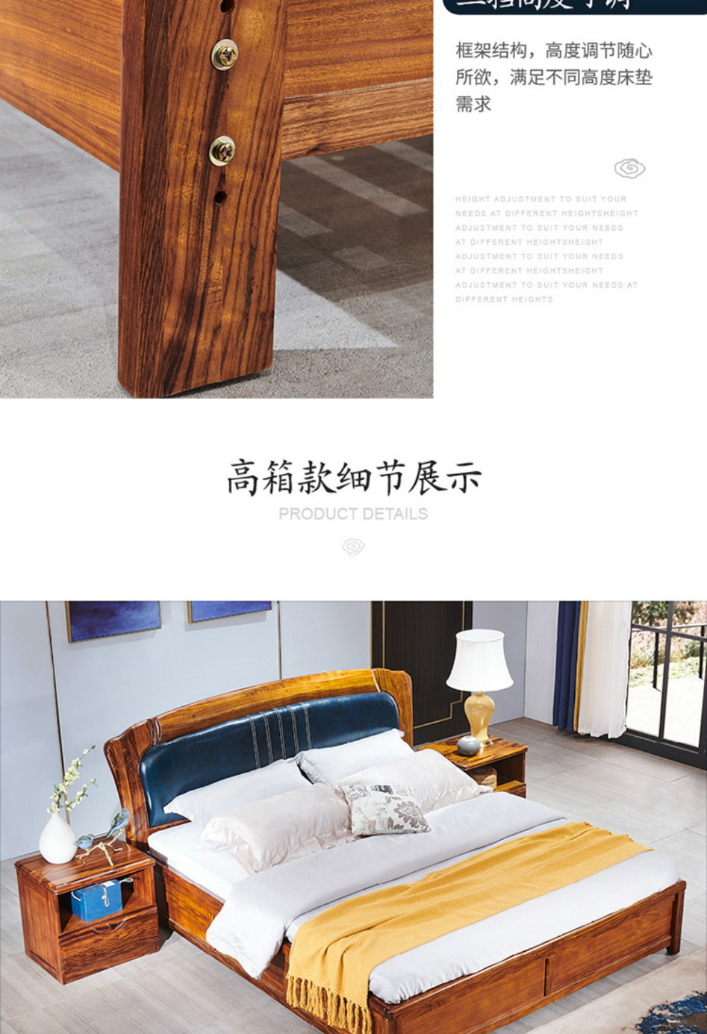 ウキンベッドの真皮の木のベッドは現代で新しい中国式北欧のシンプルでクラシックで、豪華な1.8メートルのダブルベッドの結婚ベッドの大きいベッドの寝室の家具メーカー直売の徳沁騰のフレーム構造がアフリカのウキンキです。