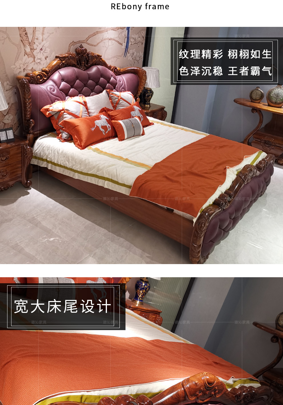 | 商品名称 | 烏金木床実木真皮ベッド結婚床1.8メートルダブルベッドの主人ベット欧式アメリカ式新中国式豪華宮廷別荘家具メーカー直営の徳沁迪致接触面頭層真皮【2.0*2.2メートル裸ベッド】アフリカ烏金木 |