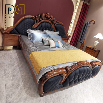 ウキンキの木の真皮のベッドの結婚ベッド1.8メートルダブルベッドの主人ベッドの欧式アメリカ式の新中国式豪華な宮廷の別荘の寝室の家具のメーカーの直売店の徳沁迪は面の頭の階の真皮に接触します
