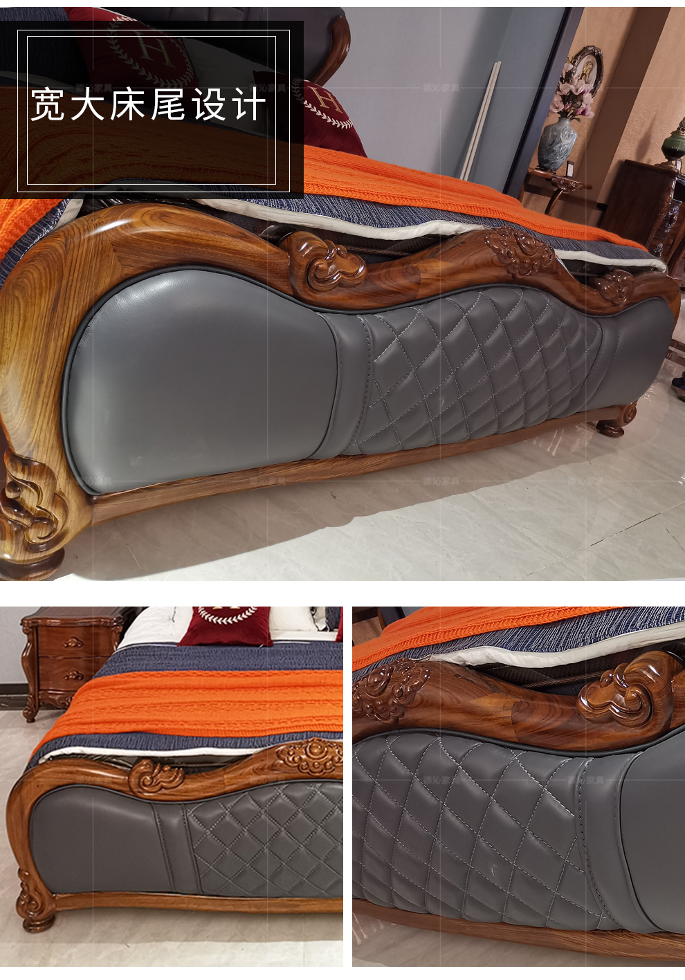黒木ベッドの実木真皮結婚ベッド1.8メートルダブルベッドの主人ベッド欧米式の簡単な中国式の宮廷別荘の大統領の寝室の家具の色はオプションとしてドイツ沁迪致接触面の頭層の真皮【1.8メートルベッド+ラテックス】アフリカ烏金木