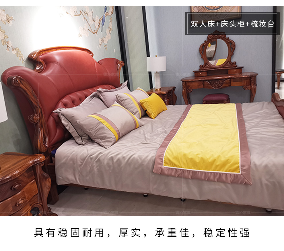 烏金木床全木頭層真皮ベッド婚床1.8 mダブルベッドの主人ベット欧式アメリカ式簡易ヨーロッパの新しい中国式高級別荘の大型ベッドルームの家具徳沁迪致接触面頭層真皮【1.8メートルベッド+ラテックス】アフリカ烏金木