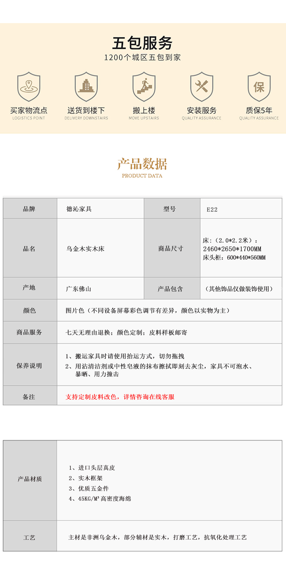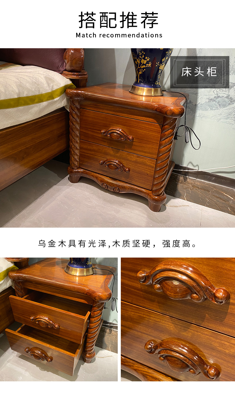 | 商品名称 | 烏金木床実木真皮ベッド結婚床1.8メートルダブルベッドの主人ベット欧式アメリカ式新中国式高級宮廷別荘家具メーカー直営の徳沁迪致接触面のトップクラフト【200*220 cm裸ベッド】アフリカ烏金木 |