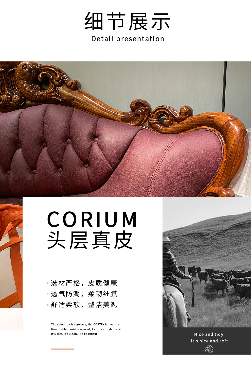ウキンの木の真皮のベッドの結婚床1.8メートルのダブルベッドの主人のベッドの欧式アメリカ式の新しい中国式の古典的な高級宮廷の別荘の家具のメーカーの直売店の徳沁迪は面の頭の階の牛皮に接触します【200*220 cm裸のベッド】アフリカの烏金の木