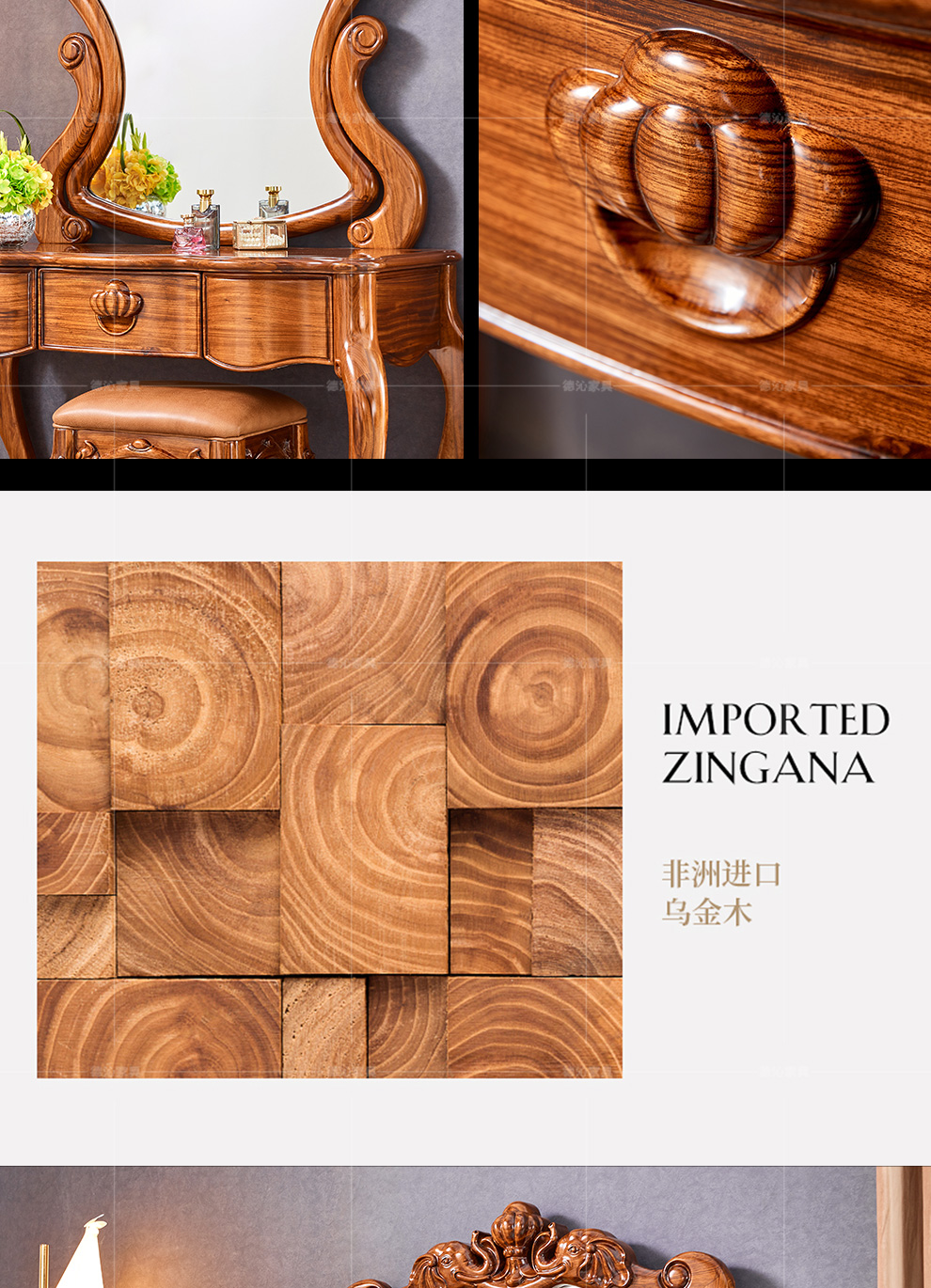 | 商品名称 | 烏金の木の化粧台の本物の木の化粧鏡の本皮の化粧の腰掛けの化粧台の欧米式の新しい中国式の簡単で美しい欧米式の近代的な北欧の寝室の家具の組み合わせのメーカーの直接販売の徳沁栄はアフリカの烏金の木に送ります。 |