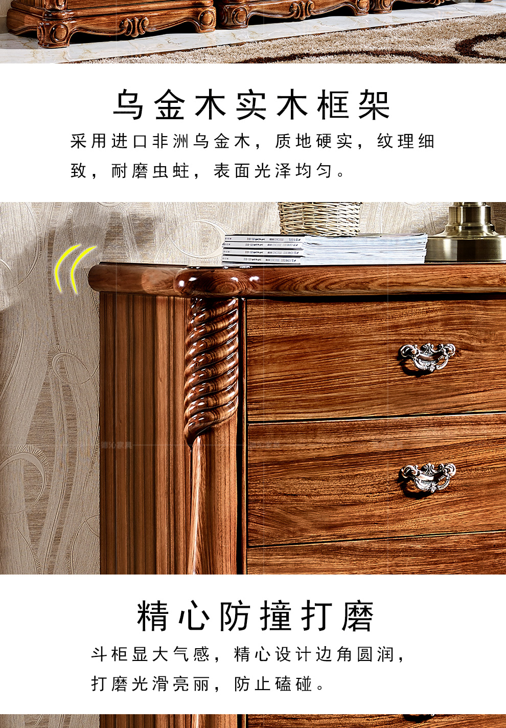 烏金木チエスト全実木三/四/五斗収納棚復古コーナー現代中国風シンプル欧米式彫刻寝室家具セットメーカー直営徳沁朗はアフリカ烏金木に送った。