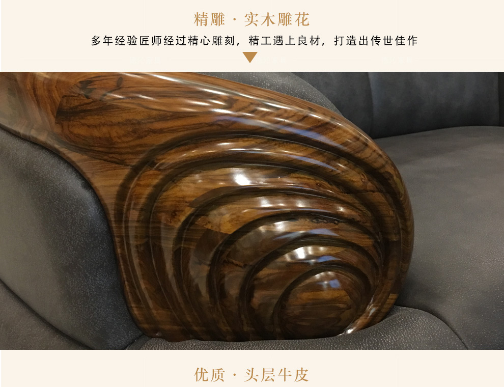 ウキンソフ・オウの実木の頭の層の真皮の新しい中国式軽い豪華な牛皮の中小型の別荘の現代簡単な新しいホールのセットの家具の組み合わせの徳沁錦は高く吉祥を表します。アフリカのウキンギの木+頭の階の牛皮【シングルの位+2人の位+3人の位】