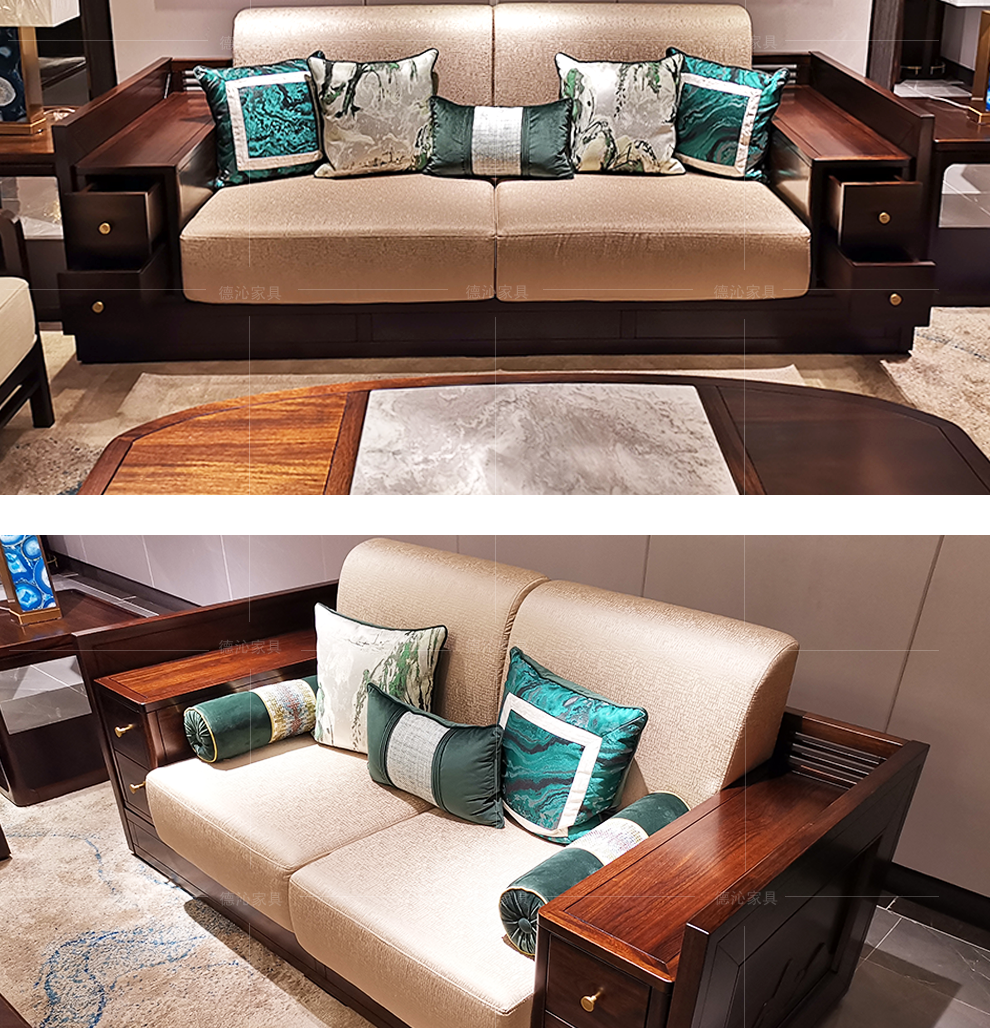 ウルキムソファ全実木布芸は別荘の大平階客間セット家具セットを分解して洗うことができます。新中国式の現代簡単で豪華なスタイルのメーカー直売の布の色はオプションで、ドイツ沁の景色はアフリカの烏金木です。