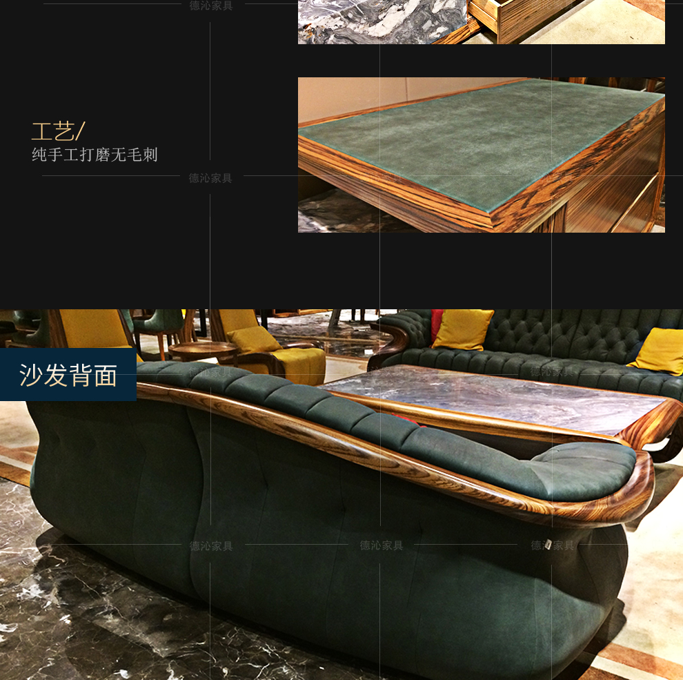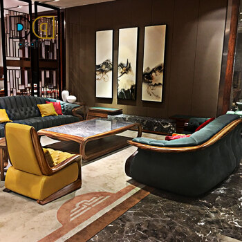 ウキンソファ全実木の頭層の真皮の牛皮中国式の後、現代の典蔵羅浮宮皮芸豪華別荘家具セットメーカー直営皮色オプションの徳沁坤はアフリカのゼブラ木+イタリアの牛皮の全皮【3.36 m 5人位】