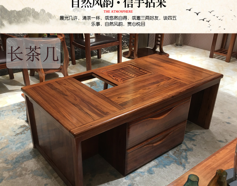 烏金木ロスポーツ茶台全実木長方形茶芸テーブル引き出し付きカンフー茶台新中国式現代簡単客間家具セットメーカー直営徳沁達はアフリカ烏金木に行きます。