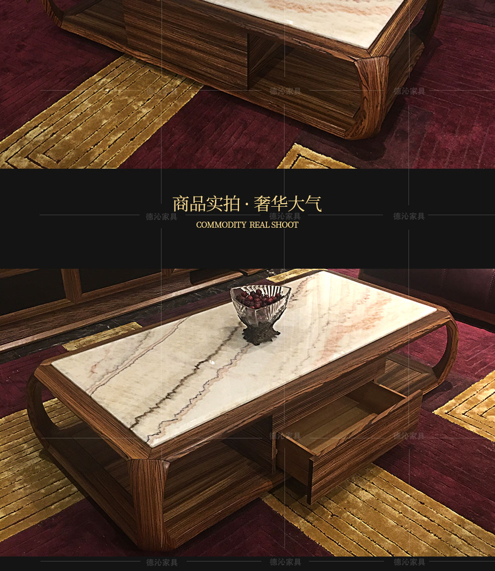 ウキン木ロテ-ル天然大理石面実木1.7メートル引き出し付き茶台コ-ナ-テ-ブル軽奢简约现代新中国式客間家具メーカー直販店徳沁坤がアフリカのゼブラ木+赤玉【170*90*45 cmロマテ-ル】